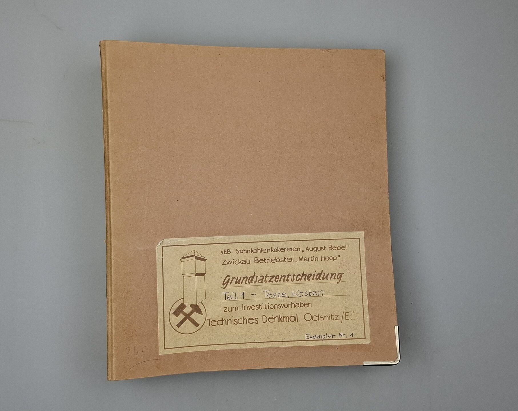 Ein Ordner – unser Objekt des Monats Januar scheint äußerlich erstmal unscheinbar. Der Inhalt, die Grundsatzentscheidung zum Investitionsvorhaben Technisches Denkmal Oelsnitz/E. und die Dokumentation dazu, sind jedoch wesentlich für die Geschichte des Museums.